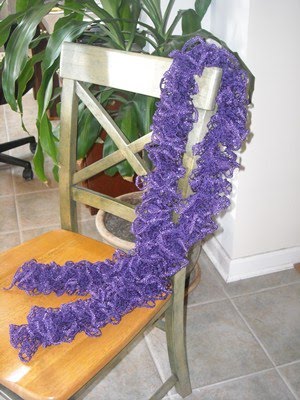 While I was finishing it, Mel said she'd buy it off of me as a Christmas gift for her daughter. I was pleased with the colors (black and purple with a little silver metallic), and seeing how the yarn was an impulse buy, I'm glad I was able to sell the finished scarf.